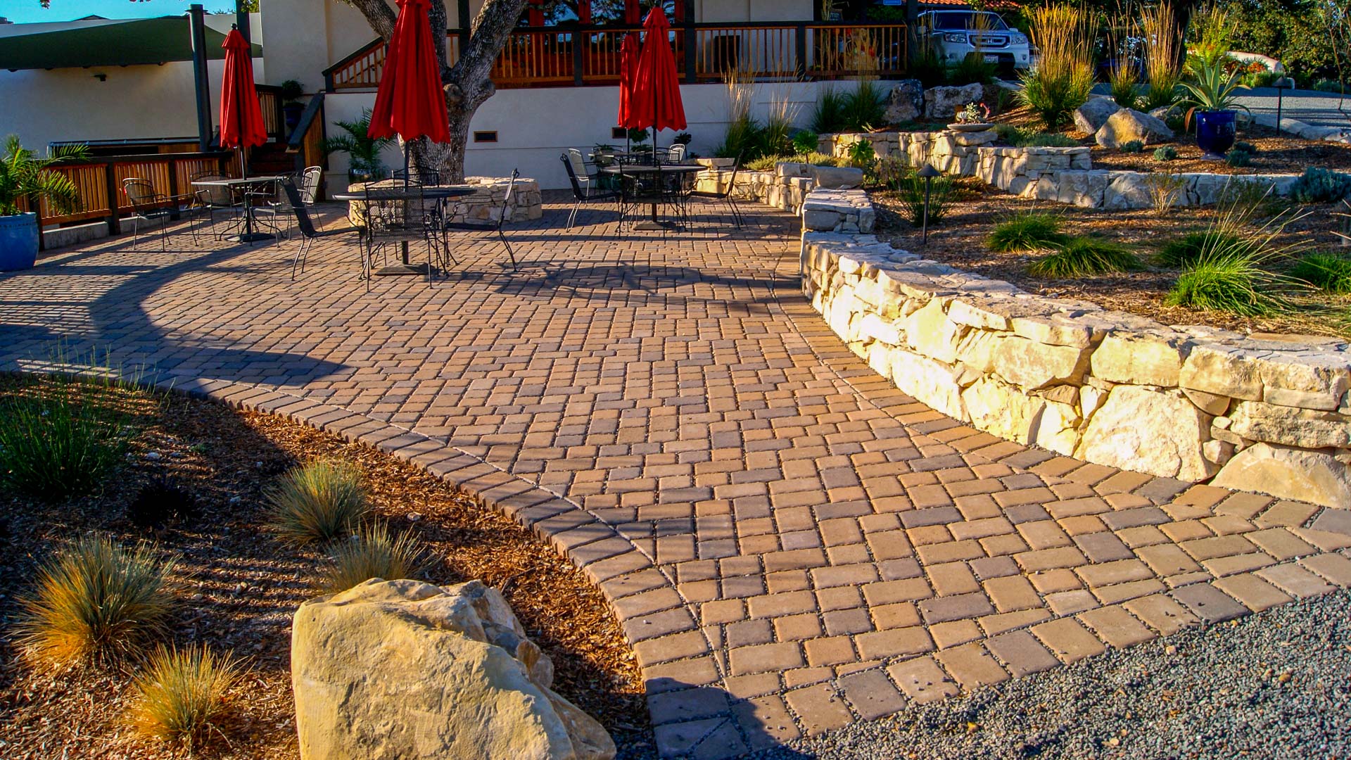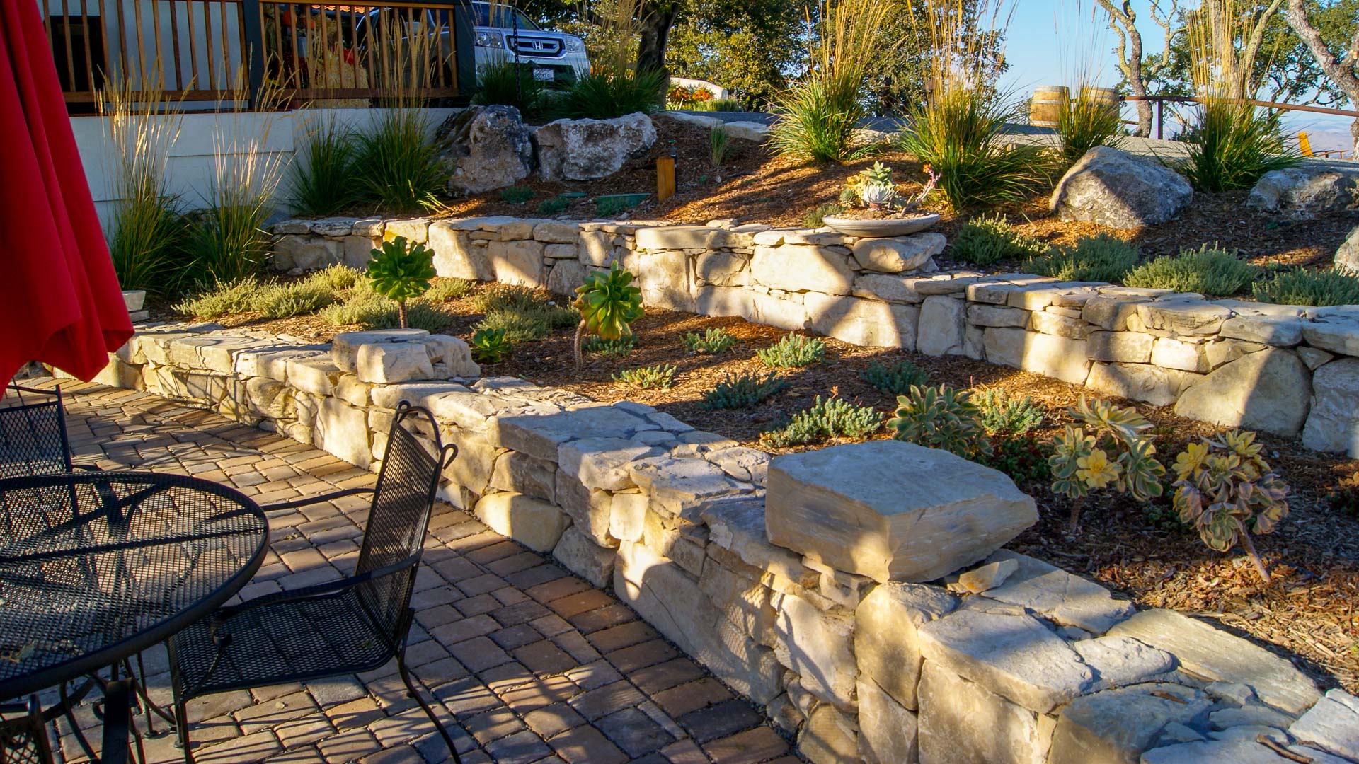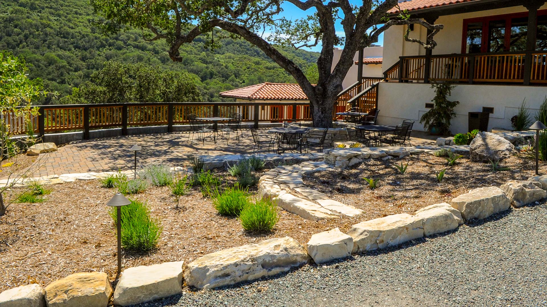 This incredible boutique tasting room, perched on a hilltop with breath-taking views of Paso Robles, features a permeable-paver patio (for the Oak’s sake!), dry-stack seat walls and a plant palette both low-maintenance and perfectly complementary to this outstanding hidden gem of a winery.