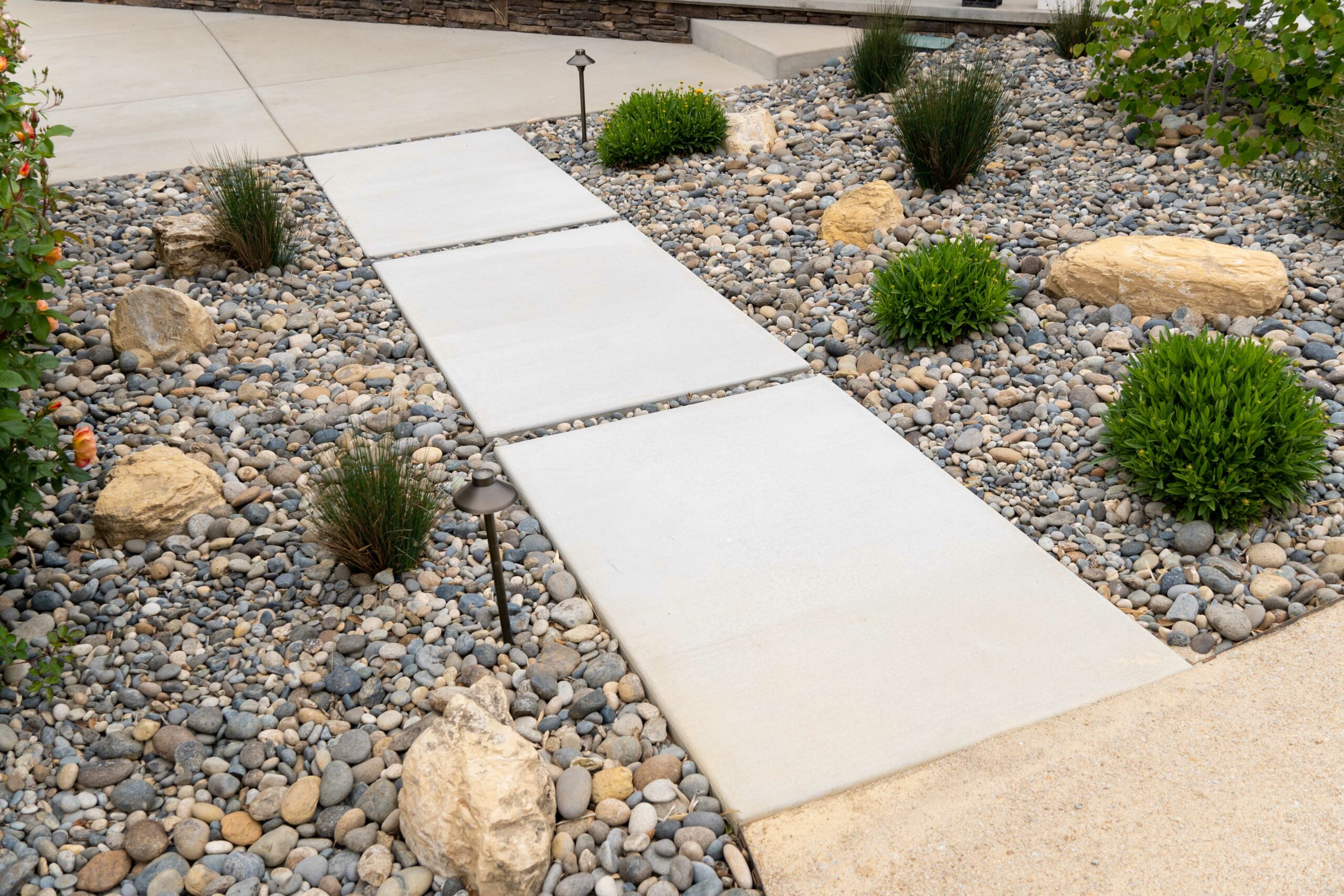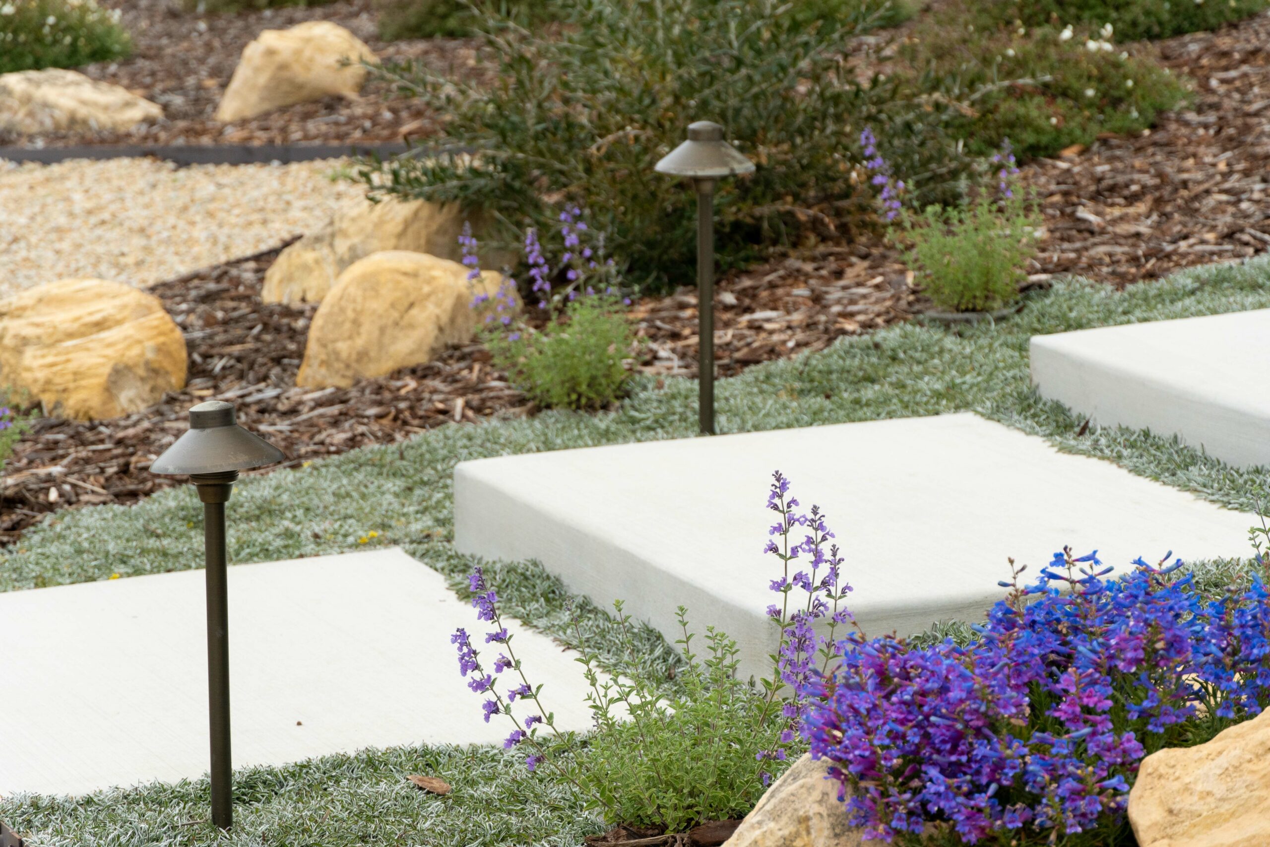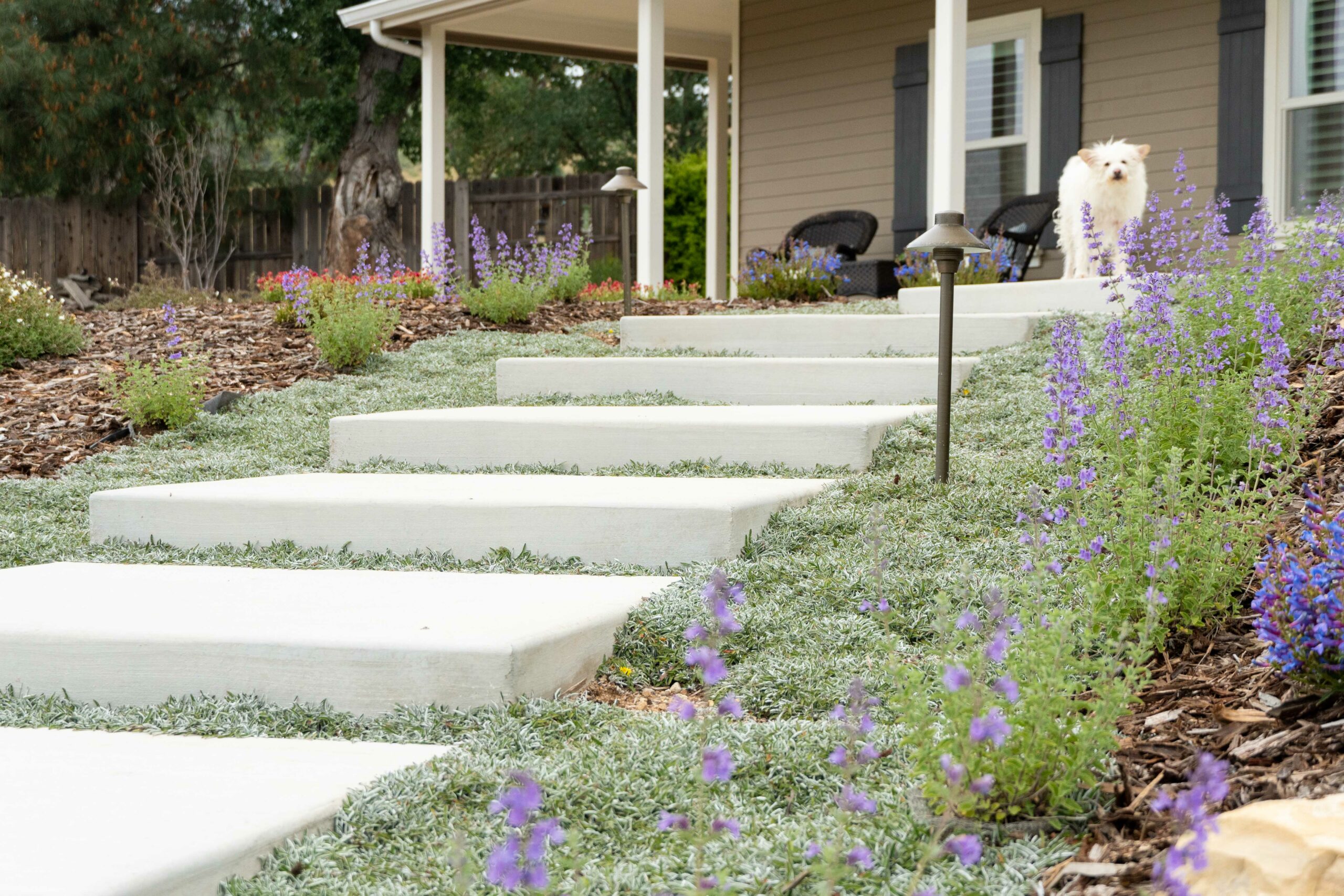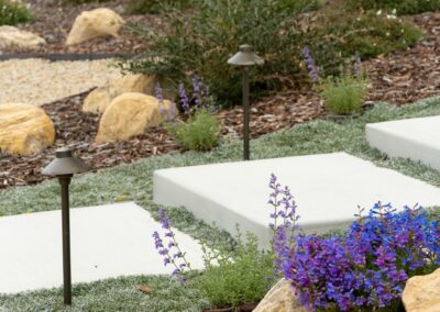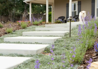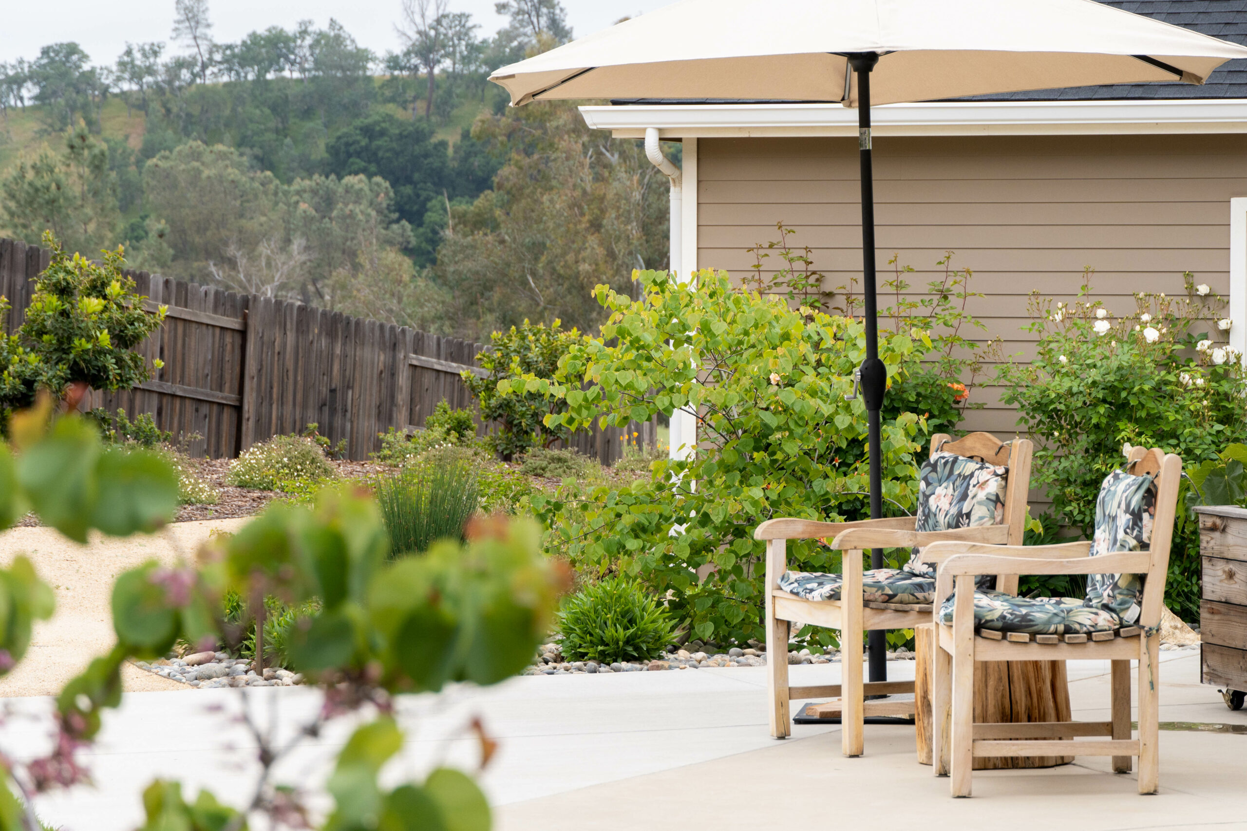 Welcome to a 360-degree outdoor living space in a perfect country setting! This Madrone landscape design and installation includes an array of low-water plantings with a carefully-crafted color palette. Boulder outcrops add a natural element to the modern segmented concrete steps and paving. Existing elements were carefully incorporated into the sitewide design to maximize usability and cohesiveness.