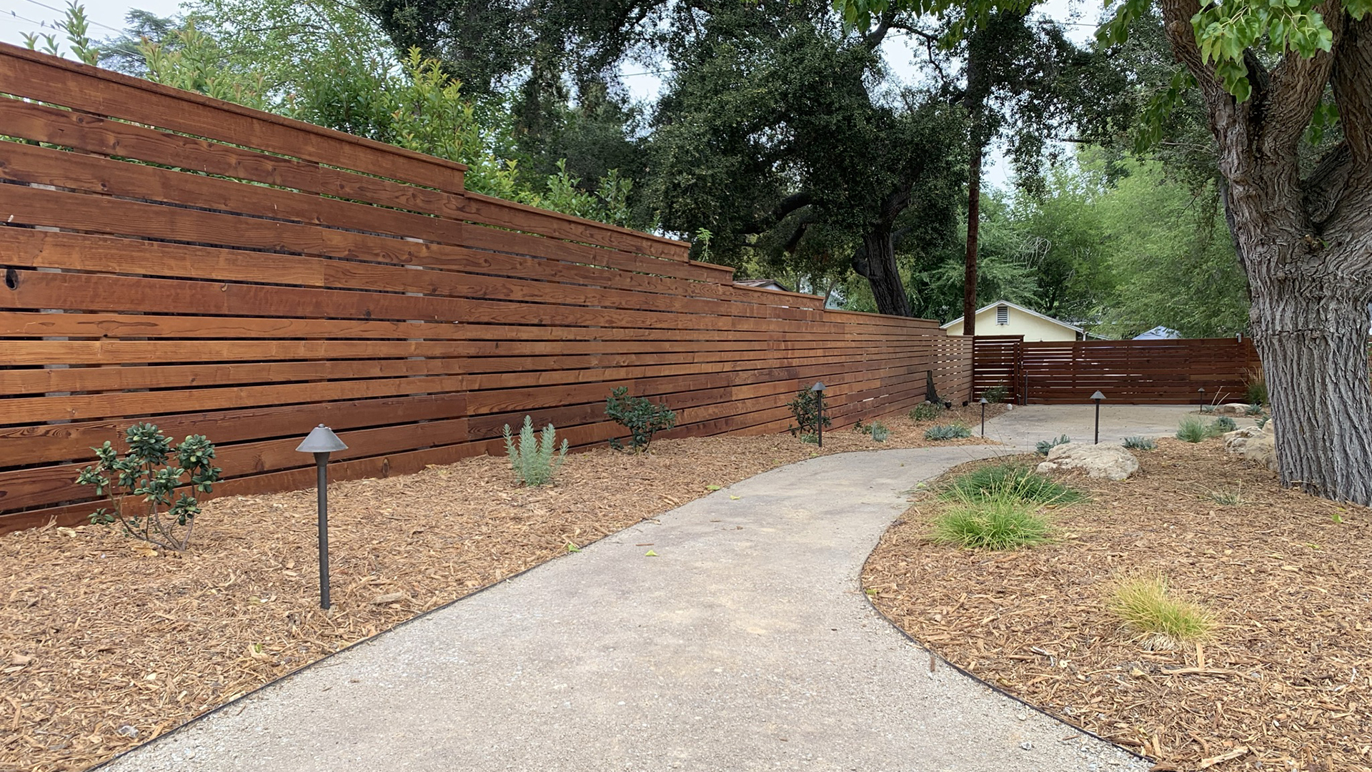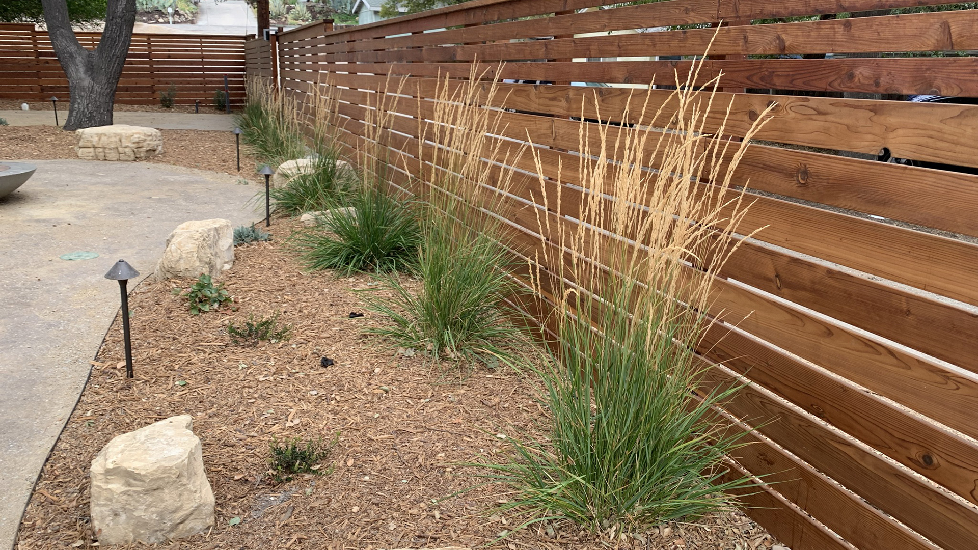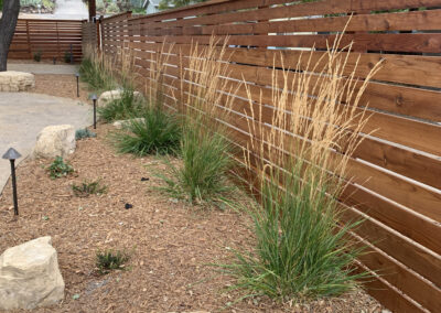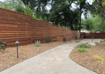 A redesign in Paso Robles at 10,600 SF, this North County backyard landscape creates a rustic modern outdoor sanctuary. The scope of work included perimeter fencing with access gates, walkways and patio areas to enhance flow and function throughout the property, a low-maintenance, drought-tolerant planting plan. Plans included an outdoor kitchen, BBQ and fire pit area, an irrigation system for maximum efficiency and performance, and lighting to enhance usability and aesthetics after dark.
