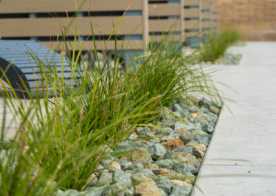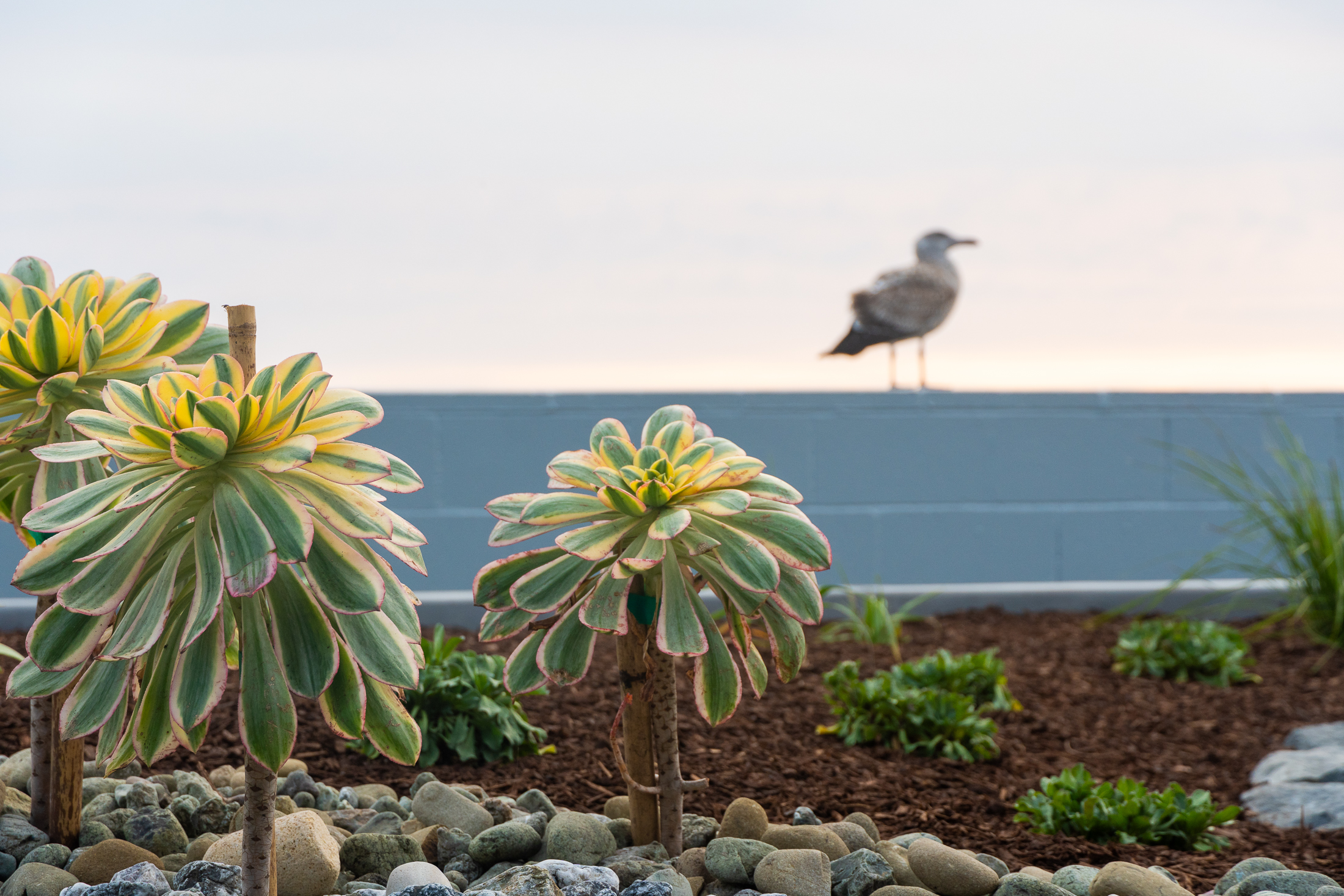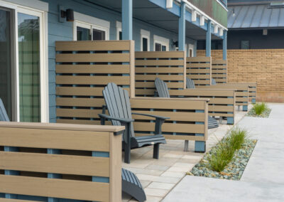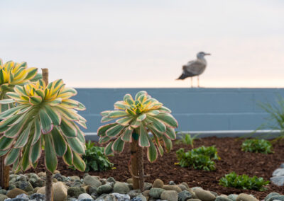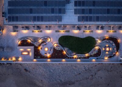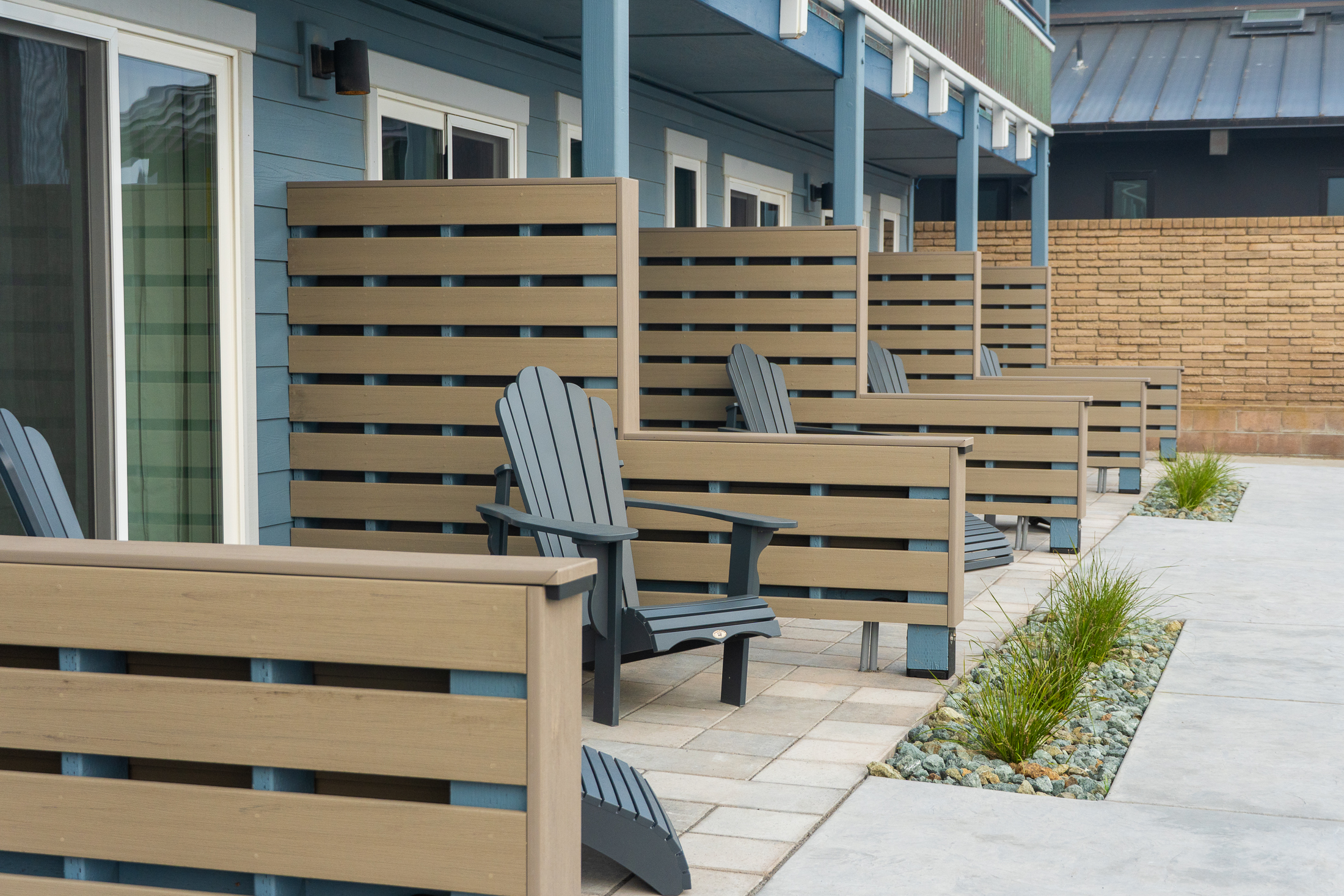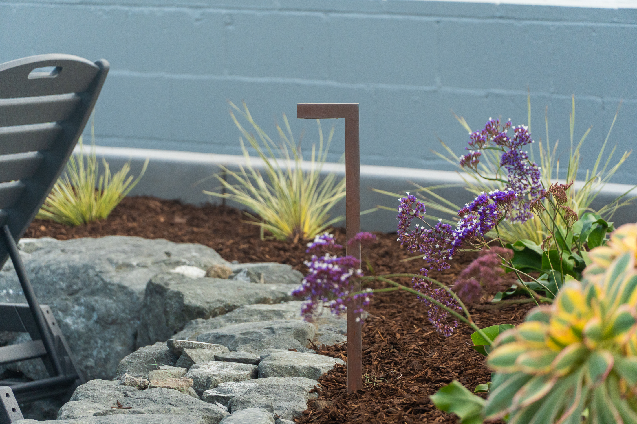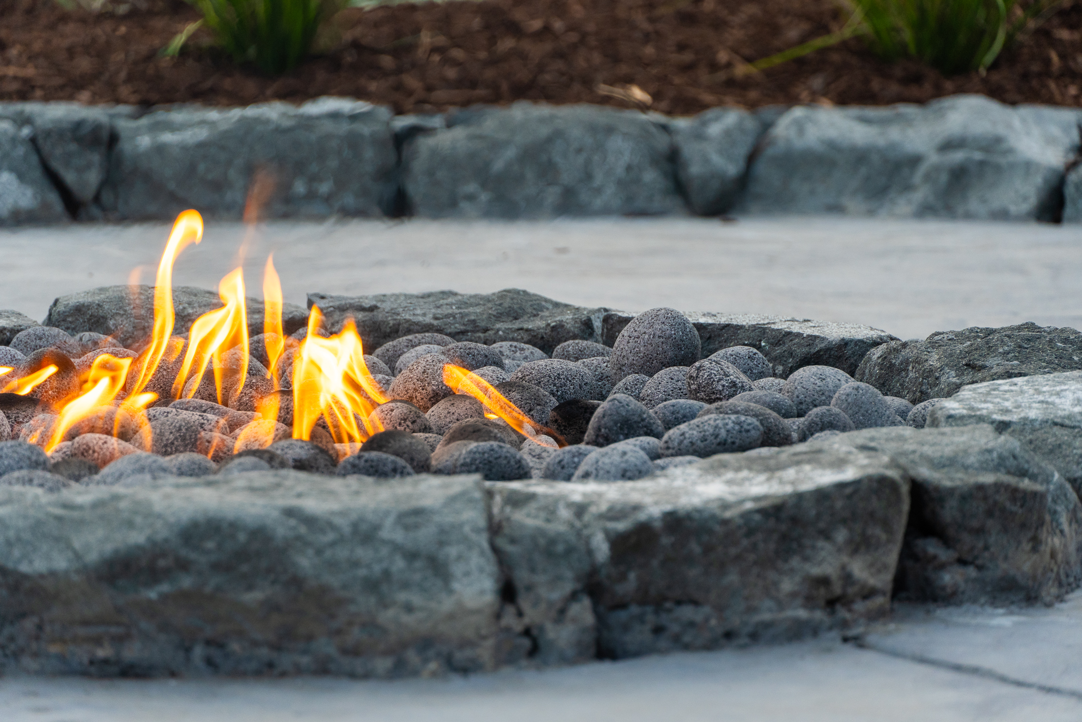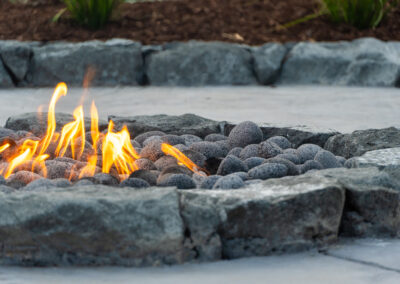 Welcome to beachfront bliss here on the Central Coast! Here’s a project for visitors to the Inn to enjoy both during the day with scenic views of Morro Rock or after dark around one of three custom-designed fire pits. The main statement wall made of locally-sourced Cambria stone is curved to mimic the organic shapes of shore and waves. Madrone detailed everything from the partition walls, barbeque island, fire pits and seat walls to the beach pebbles and planted areas. Materials such as composite wood, colored beach pebbles and pavers were selected for their durability as well as beauty. Ample landscape lighting further makes the space inviting as the sun sets on a truly gorgeous location.